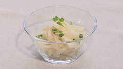 材料 ナシ(細切り)1個 小ネギ(斜め切り) 塩 少々