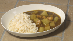 1.鍋に油を熱し、玉ねぎをじっくり炒める。肉とパパイヤを加えて炒め、